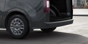 La Staria Panel ofrece un volumen de carga de 4.935 litros y una capacidad de 1.155 kg, con puertas laterales corredizas y traseras para un acceso fácil. Su piso plano y antideslizante y ganchos de anclaje garantizan estabilidad en cada trayecto.